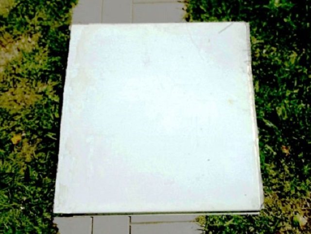 - Nous abaissons une feuille de matériau de toiture dans chaque trou pour protéger la solution de l'humidité.