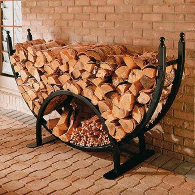 Le support de stockage de bois de chauffage peut être stationnaire et portable. Dans la rue, ils construisent un bois de chauffage spécial, dans lequel ils stockent tout le stock pour l'hiver et en apportent une plus petite partie dans la pièce. Pour les poêles chauffants, on utilise non seulement du bois de chauffage, mais également des briquettes ou des granulés artificiels spéciaux à longue combustion.