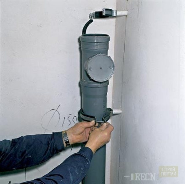 La colonne montante verticale et les canalisations horizontales du système d'égouts interne peuvent être posées à l'intérieur des murs dans une installation fermée ou fixées aux murs et au plafond. La première option prévoit la chasse, qui s'accompagne de poussière et n'est pas applicable dans toutes les maisons. L'utilisation d'attaches spéciales est plus pratique.