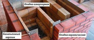 - La connexion des murs combustibles de la pièce et de la maçonnerie ne doit pas être effectuée directement, par conséquent, une couche de ce que l'on appelle le réfractaire doit être posée entre eux. Le plus souvent, des matériaux modernes mais assez abordables sont utilisés à cette fin, y compris de la laine minérale spéciale sans charges organiques, ainsi que du carton de basalte spécial. La même règle s'applique lors de l'aménagement de l'espace entre la brique et le canal de combustible.