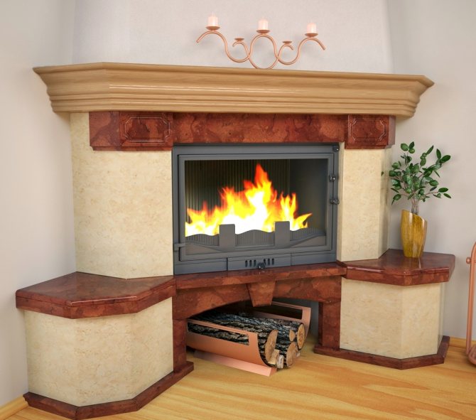 Le bois est un matériau polyvalent à partir duquel les portails de cheminée sont assemblés, convenant à la plupart des styles. Décorez les parties latérales et supérieures avec des sculptures ou obtenez un décor prêt à l'emploi. Avant la finition finale, le bois est traité avec des produits ignifuges et antiseptiques. La couche de finition est une peinture, un vernis décoratif ou un apprêt.