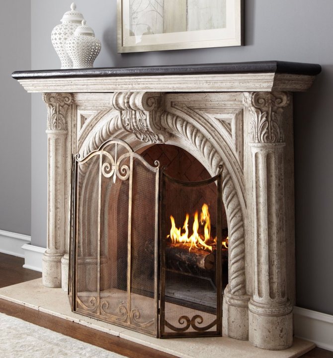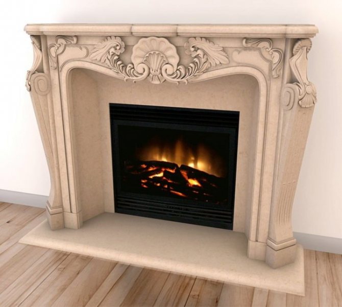 - Si le style de la pièce est fait dans le sens médiéval, le portail de la cheminée doit être décoré de "moulures en stuc". Cela rendra le produit principal massif et fondamental.