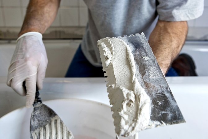 Les blocs à rainure et languette sont fixés avec une colle spéciale sur une base en plâtre.