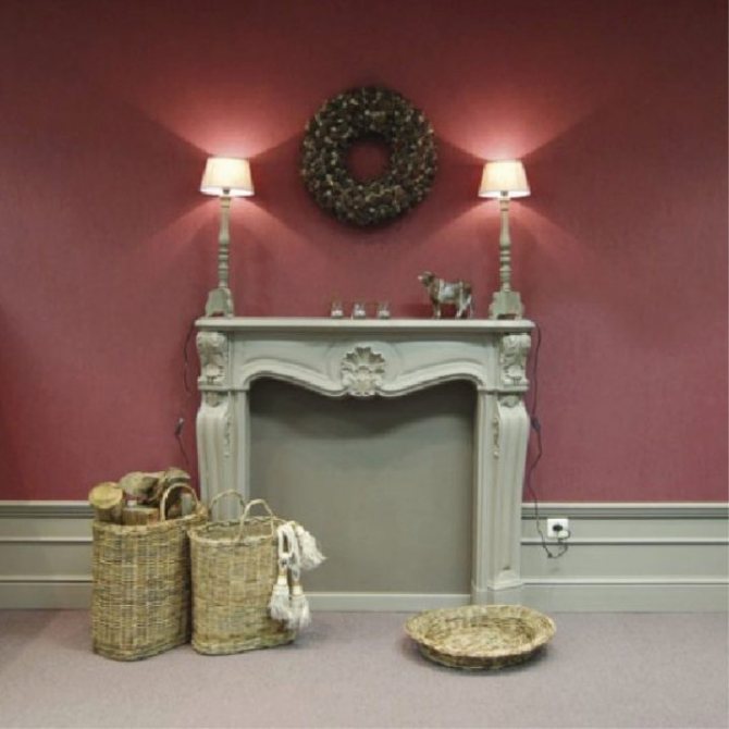 Il est facile de dire aux blancs n'importe quelle couleur, y compris la soi-disant. "Vieillissement" de la surface. Les colorants qui créent une imitation du marbre et du bois s'adaptent bien au gypse. Il est facile d'appliquer de la dorure ou de la peinture d'art à la base. Les images 3D de la flamme sont particulièrement impressionnantes à l'intérieur des fours. De l'intérieur, le foyer symbolique peut être décoré avec l'éclairage de bougies LED sûres. Pour obtenir un effet décoratif maximal, il est recommandé de décorer l'intérieur du produit avec un matériau différent de celui des murs. L'imitation de la maçonnerie, faite de carreaux, est très jolie.