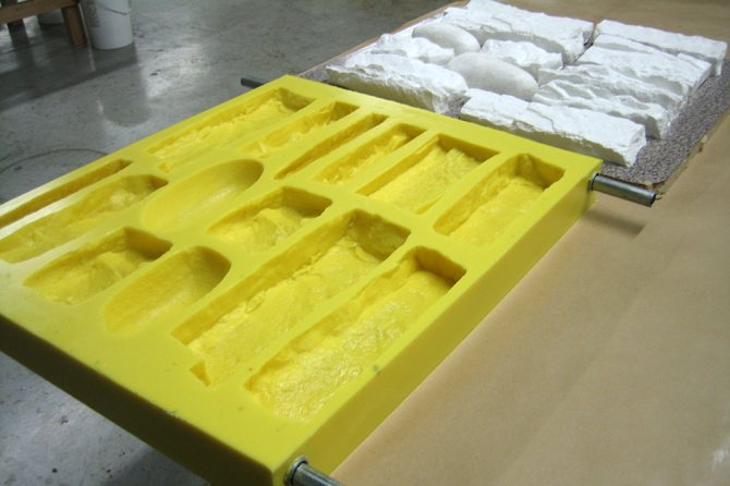 La pierre artificielle est fabriquée à partir de compositions de gypse et de ciment, de plastique, de composites acryliques.