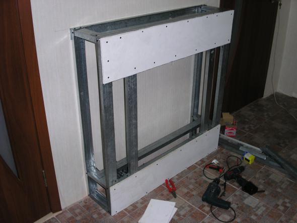 Une base est faite de cloison sèche, qui est ensuite décorée d'éléments décoratifs. C'est l'option la plus simple.