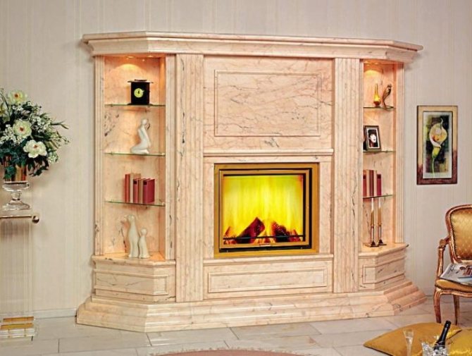 Les cheminées en marbre sont durables et faciles à nettoyer. Le matériau artificiel n'est en aucun cas inférieur au naturel, il est facile à broyer lorsque des rayures apparaissent.