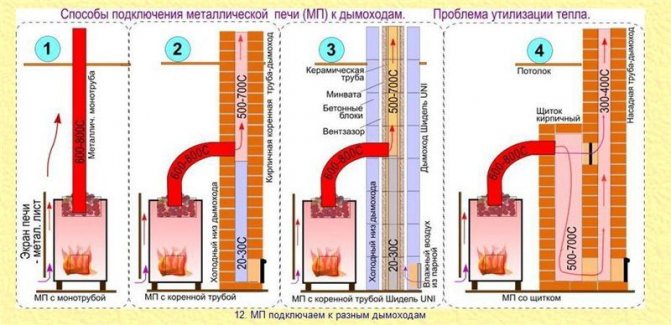 Un tel système est utilisé comme extension d'un four en fonte. L'appareil est équipé de deux caméras situées verticalement. Le gaz y restera jusqu'à ce qu'il refroidisse complètement. Ce n'est qu'alors qu'il sort. Étant donné que la fumée chaude est à l'intérieur de la structure pendant une longue période, le bouclier se réchauffe beaucoup plus. Le principal avantage d'un tel système est la possibilité d'installer une vanne supplémentaire. De cette façon, il sera possible d'ajuster le niveau de chauffage.