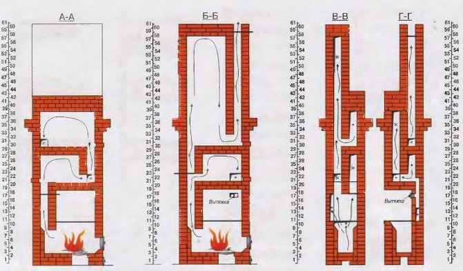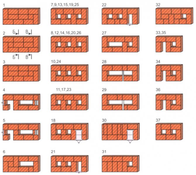- Les niveaux 33, 34 et 35 de couches sont posés en fonction de la commande, et au dernier - 36ème rang, il est impératif qu'ils prennent soin de sortir des conduits (aération avec fumée).