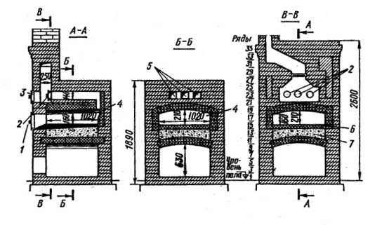 Un espace d'environ un quart de la brique est laissé entre la paroi arrière du four et la maçonnerie, de sorte que le produit sera «lavé» par des gaz chauds de trois côtés.