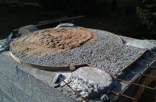 | Couler du mortier isolant. Tout d'abord, une cage d'armature est posée sur l'échafaudage sur la planche de contreplaqué inférieure. De plus, le béton est coulé à la hauteur de la cage et légèrement nivelé. Prenez simplement une règle de plâtrage et enlevez tout ce qui se trouve au-dessus du renfort. Après quelques jours, lorsque le béton devient un peu plus résistant, un coffrage est installé sur la cage sous le mortier isolant et un isolant en perlite ou en argile expansée y est coulé. |