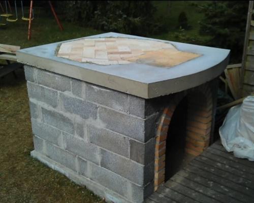 | Forme de plaque. Le poêle n'a pas besoin d'être carré, il peut être rectangulaire ou même polygonal, l'essentiel est que le four s'adapte dessus et vous, alors c'était pratique pour cuisiner. J'ai fait la plaque de base légèrement plus grande que le podium de 1,4x1,2 m J'ai laissé cette "visière" de 200 mm sur la face avant du four. |