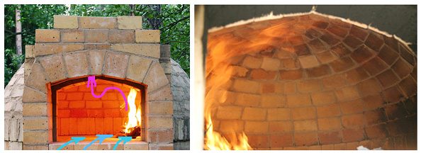 L'entrée du four est faite voûtée ou semi-voûtée, la hauteur de l'entrée est égale à 0,6 (60%) de la hauteur du dôme.Selon les règles, la largeur de l'entrée doit être égale au rayon du dôme, mais parfois elle est légèrement plus petite, cela n'affecte pas les conditions de température.