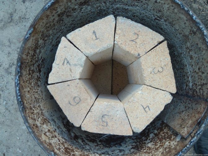 - Des briques réfractaires légères de la marque "ShL" ou des plaques d'argile réfractaire fibreuse sont posées sur le fond de la future unité, qui sont découpées sur mesure. Pour lier les briques, on utilise du mortier, de la terre chamottée ou un mélange de maçonnerie. Pour une fixation de haute qualité des briques sur une surface métallique, 30% de ciment est ajouté au mélange.
