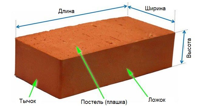 Pour la disposition des poêles, des conduits de cheminée, des cheminées, des briques de plusieurs tailles standard sont utilisées, dans lesquelles trois indicateurs principaux apparaissent: la longueur d'une grande plate-forme (lit ou dés), sa largeur et la hauteur du parallélépipède.