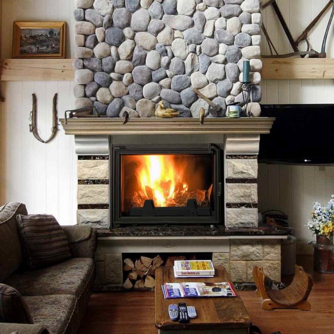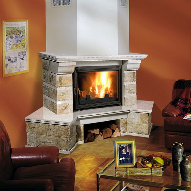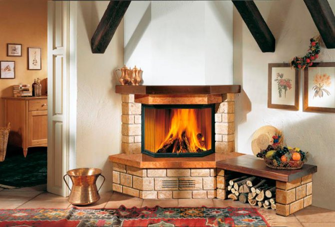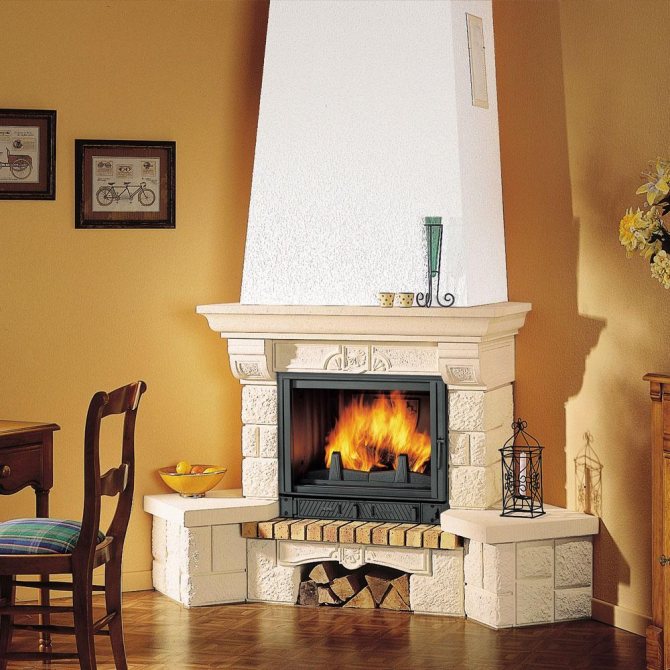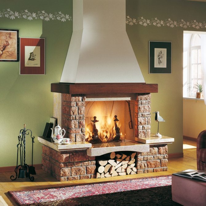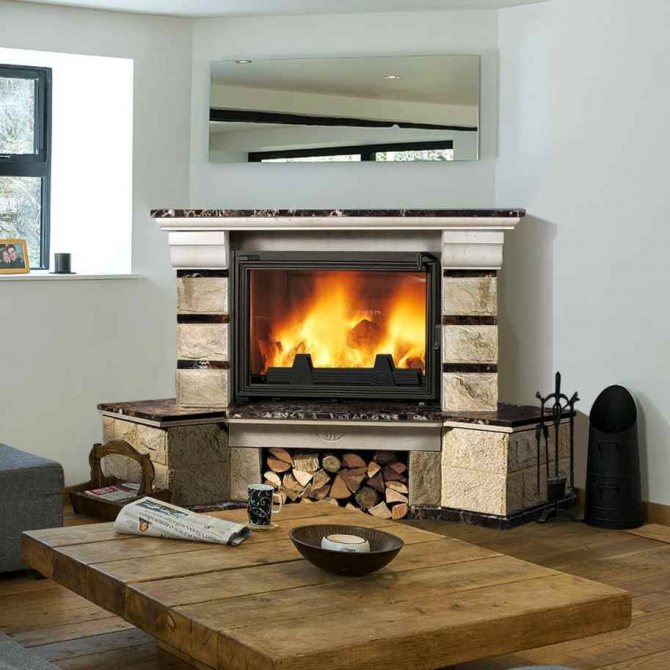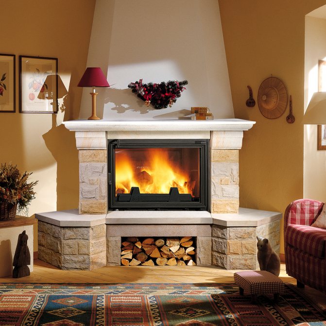 - s'il s'agit d'une cheminée à foyer fermé, la puissance de combustion est régulée par un portail (volet), et si une cheminée à foyer ouvert, l'intensité de la combustion est créée par la quantité et la qualité du bois de chauffage (le chêne dégage chaleur lors de la combustion, mais il y a aussi beaucoup de monoxyde de carbone);