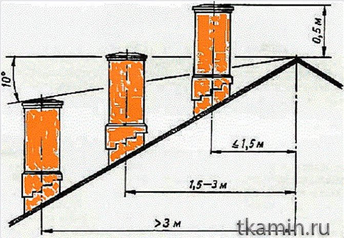 Cette théorie est la preuve qu'à hauteur de cheminée identique, la valeur de poussée dépend de la forme de la section du canal. Les paramètres moyennés de la cheminée peuvent être réglés et respectés pendant la construction. La longueur du tuyau sera affectée par l'endroit où il sort par le toit. Ce ne sont pas les proportions qui importent ici, mais la distance entre le tuyau et la crête. S'il varie à moins de 1,5 m, alors le tuyau est érigé à 0,5 m au-dessus du sommet du toit.
