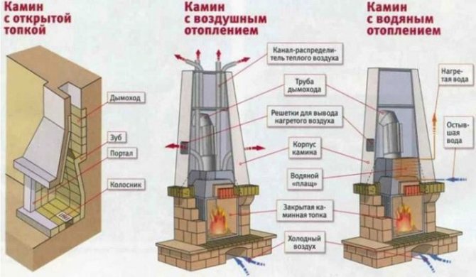 L'un des principaux dispositifs d'une cheminée est une chambre de combustion ou une chambre de combustion. Une partie de la paroi arrière de la chambre de combustion est la soi-disant dent de cheminée. Il ne permet pas à la flamme de voler directement dans le tuyau, mais constitue un obstacle et coupe le feu. L'efficacité du foyer dépend du foyer, de la cheminée, du tirage, du combustible.