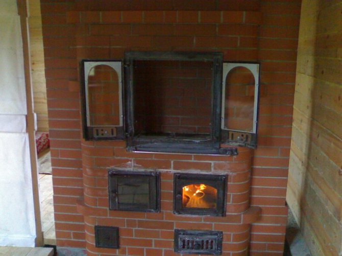 Bien sûr, économiser du gaz n'a pas de sens. Dans cette version, un poêle en brique pour la maison est fait pour l'intérieur, pour s'asseoir près du feu et ainsi de suite ... Le poêle est le cœur de la maison, après tout ...