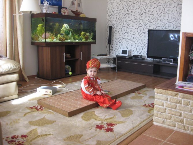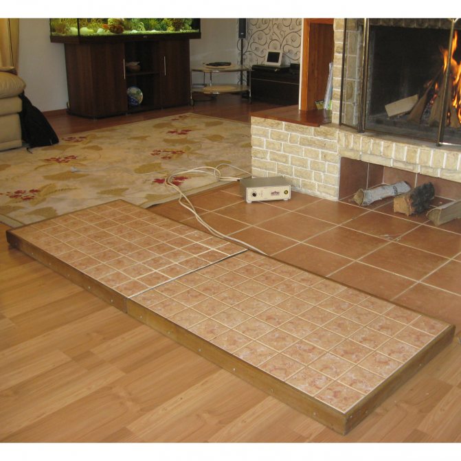 - Devant la chambre de combustion, des matériaux incombustibles doivent être posés sur le sol. Ceci est une mesure de sécurité au cas où du charbon tomberait de la chambre de combustion. Bien que les poêles modernes pour un appartement en ville soient un appareil fiable, les experts croient toujours que «Dieu protège ceux qui font attention».