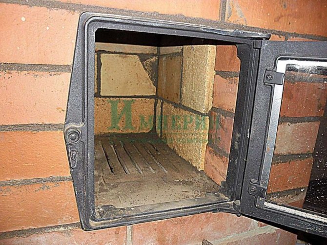 - Afin de renforcer la porte du foyer, vous devrez la retirer de la maçonnerie avec toutes les fixations et les cadres. Dans le même temps, la maçonnerie est partiellement enlevée et ensuite la brique est placée et fixée sur des mélanges spéciaux pour réparer les poêles et les cheminées à base de chamotte.Si nécessaire et lors de l'inspection effectuée, il peut être nécessaire de remplacer les pieds de montage.