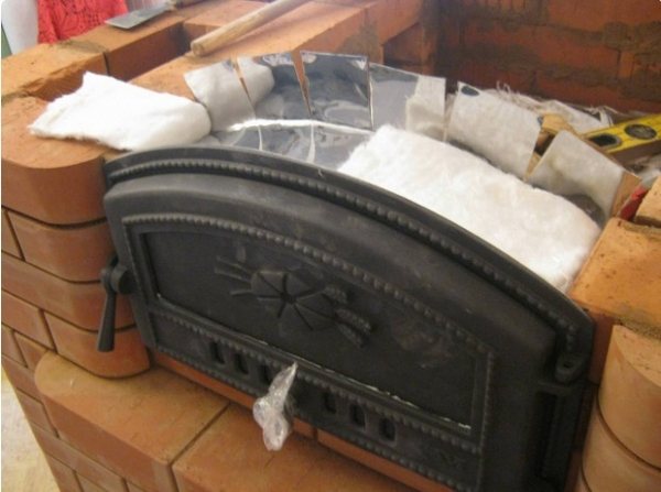 Dans la même rangée, faites une porte pour la chambre à combustible. La chambre à combustible doit être recouverte de briques en argile réfractaire, placées sur le bord. Le revêtement - et c'est le nom de ce procédé - est nécessaire pour protéger la paroi du four des températures élevées.