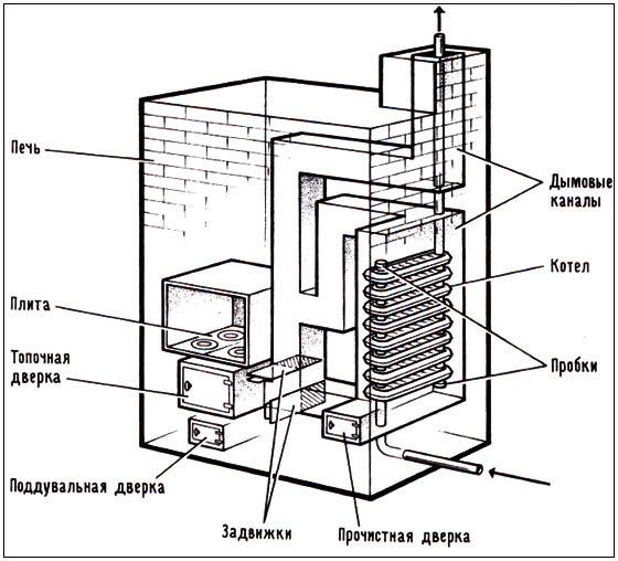 - Conception... La chambre de combustion (creuset), sous - le fond du four, le six est une place devant la chambre de combustion, où il était commode de mettre de la vaisselle lourde avant de les enfoncer profondément dans le four. La bouche sépare la chambre de combustion du poteau, à travers lequel le bois de chauffage est déposé, ainsi que la sortie des produits de combustion dans la cheminée. La vue, si nécessaire, ferme l'ouverture de la cheminée, la bouche est fermée avec un registre. Le four de cuisson est utilisé pour stocker le bois de chauffage.