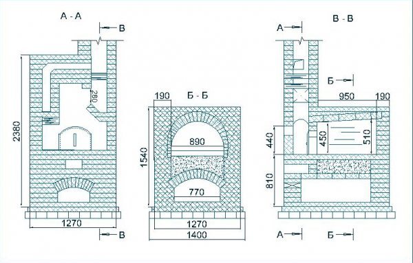 Photo 4. Dessin d'un poêle russe avec une commande hollandaise. Les dimensions de l'appareil sont indiquées en millimètres.
