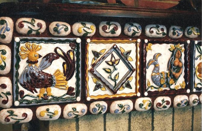 Ce sont des éléments de pièce pour faire face à la cheminée, qui sont traités avec de la glaçure... Ils vous permettent de créer presque n'importe quel motif sur le produit. Parfait pour faire face à une cheminée ou à un poêle (voir Comment recouvrir un poêle: tuiles ou tuiles).