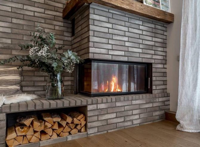 Noter! Lorsque vous choisissez des carreaux réfractaires pour le mur derrière le poêle, le foyer ou la cheminée, vous pouvez faire attention aux modifications avec des paramètres de résistance au feu inférieurs. De par leur conception, ils peuvent répéter le design du foyer, s'harmoniser avec celui-ci ou contraster.