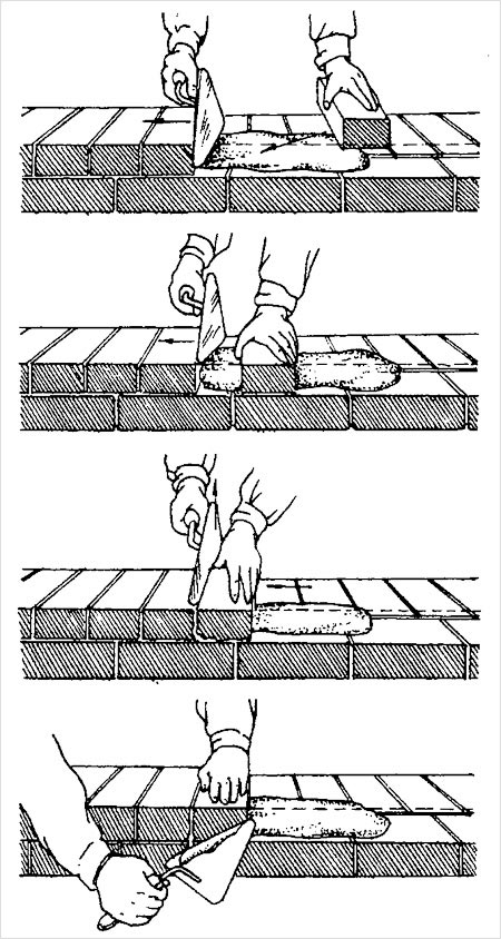 La maçonnerie de maçonnerie est réalisée de trois manières: par pression, par affleurement et par affleurement avec la finition au mortier, et zabutki - à moitié affleurante.