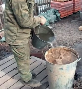 - Si la teneur en graisse de l'argile est normale, elle est placée dans un grand récipient en couches, au cours duquel elle est humidifiée, puis versée avec de l'eau. Après 5 heures, l'argile imbibée doit être soigneusement mélangée et passée à travers un tamis d'un maillage de 3 mm, puis diluée avec de l'eau jusqu'à la consistance souhaitée. Si l'argile a une teneur élevée en matières grasses, du sable tamisé est versé dans l'argile détrempée. La solution résultante est ensuite soigneusement mélangée et filtrée.