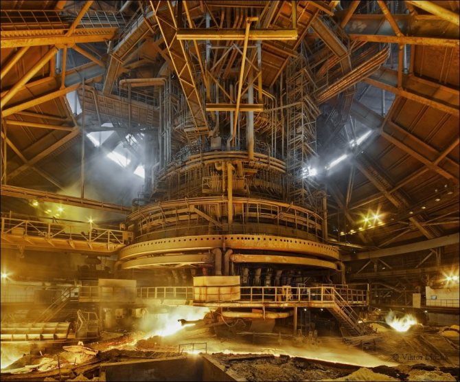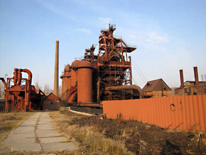 En fait, un haut fourneau sans éléments supplémentaires comme des tuyaux ressemble à ceci: (deux fours abandonnés près de la fonderie d'aluminium à Krasnoturinsk) En fait, il s'agit d'un tuyau, comme on l'écrit sur Wikipédia, jusqu'à 35 mètres de haut, bien que selon les impressions, ils sont beaucoup plus élevés ... Ils sont utilisés pour fondre la fonte brute et les ferroalliages, et si le minerai est très riche, alors pour la concentration finale. La méthode de leur travail est simple: la charge est versée par le haut (un mélange de minerai, de coke et de calcaire), du gaz chaud est injecté par le bas - la température dans le haut fourneau atteint 2000 degrés. Le processus de son fonctionnement est continu: il faut jusqu'à plusieurs mois pour allumer un haut fourneau du milieu du XXe siècle (l'époque de l'apogée de ces structures), et s'il est arrêté en cours de fonctionnement, une «chèvre» est formé à l'intérieur, une masse solide inutilisable, qui, de plus, est presque impossible à extraire. Le nom - curieusement, russe: "dmene" - "coup". Dans les pays civilisés, à l'exception de l'Angleterre et de l'Amérique (qui ont aussi des ambitions impériales), ce terme barbare n'est pas utilisé, préférant dire «Haut fourneau».