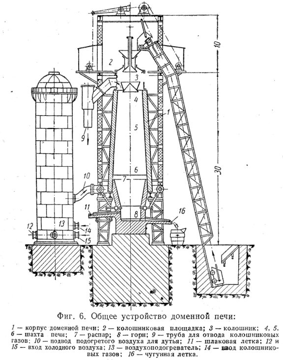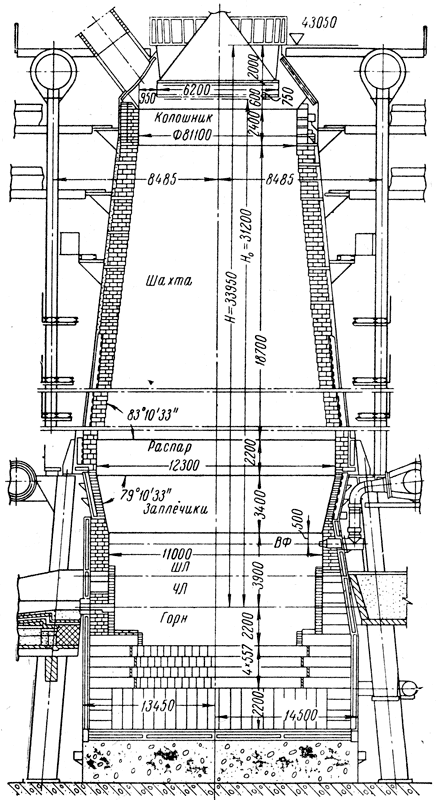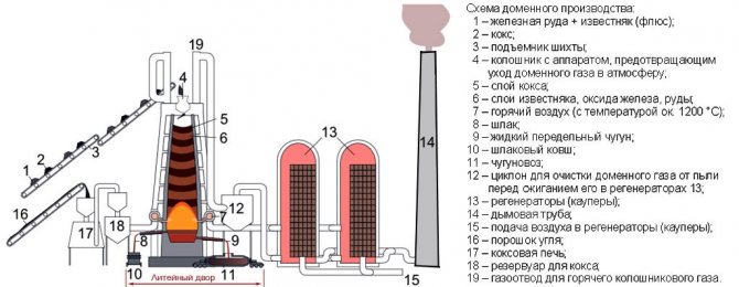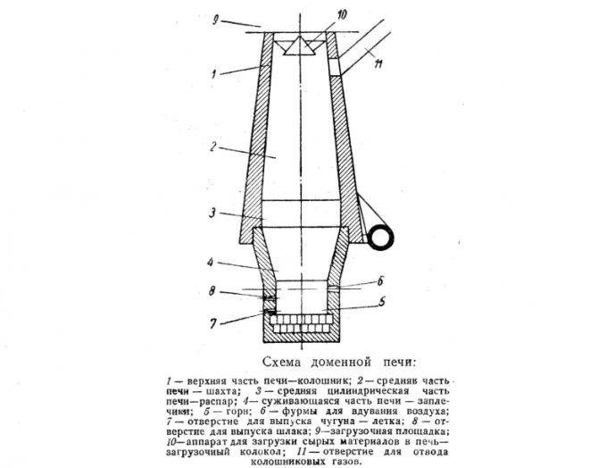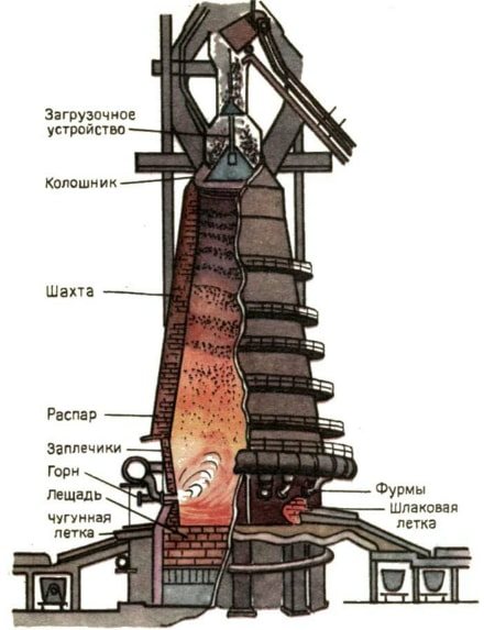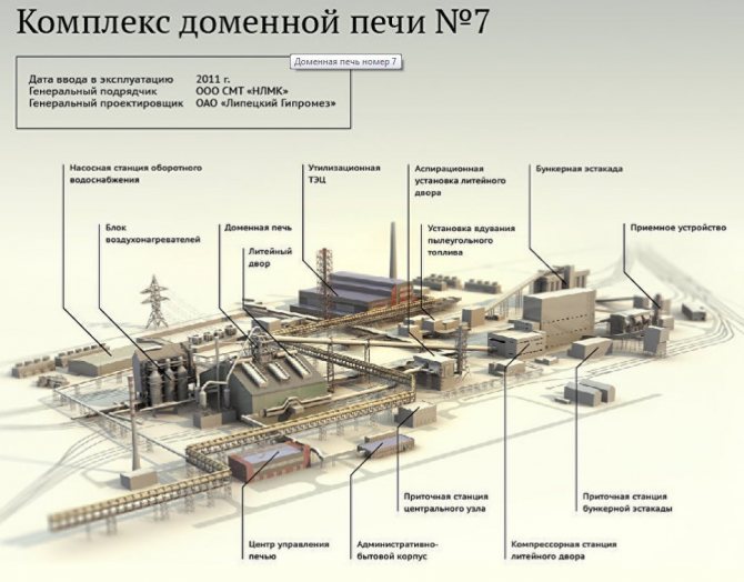 La conception du haut fourneau est très complexe, c'est un grand complexe, qui comprend les éléments suivants: