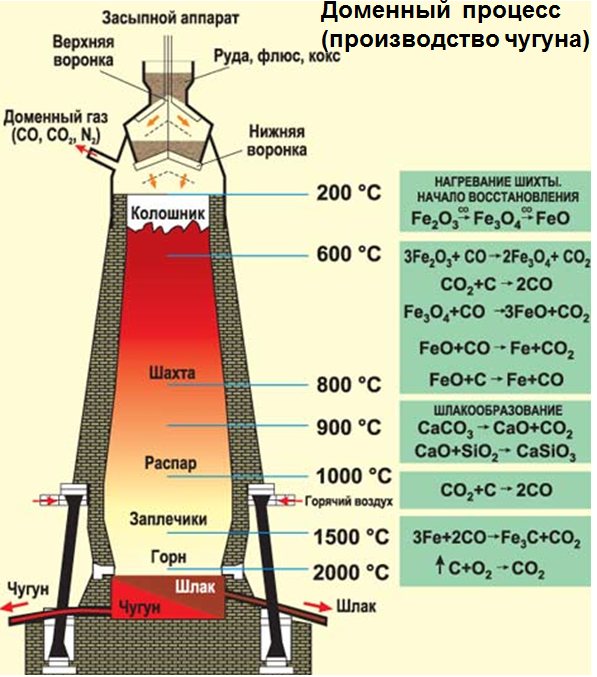 Au fur et à mesure que le fer s'écoule, il entre en contact actif avec le dioxyde de carbone, saturant le métal et lui conférant les propriétés requises. La teneur totale en carbone du fer peut aller de 1,7%.