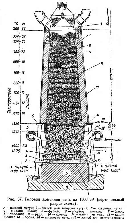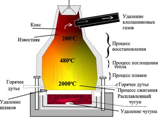 La température dans le haut fourneau peut être de 200-250 ° C directement sous le dessus et jusqu'à 1850-2000 ° C dans la zone active - vapeur.