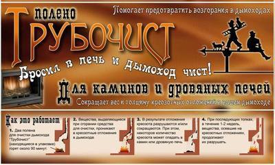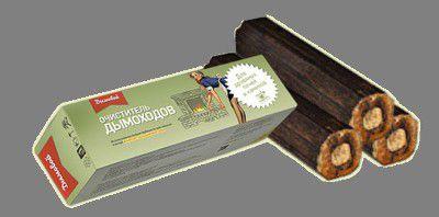 Une bûche de nettoyage de cheminée appelée "Ramoneur" est produite par un fabricant domestique. Visuellement, cela ressemble à un bloc de bois allongé ordinaire.