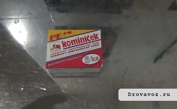 Avec l'utilisation régulière de préparations industrielles, il s'avérera de reporter le nettoyage en capital de la cheminée. Les réactifs sont ajoutés au four et, lors de la combustion, ils libèrent des composants qui transforment les dépôts organiques amorphes en une fraction solide. La suie perd son adhérence aux parois et s'effrite vers le bas. Par la suite, il est nettoyé du four.
