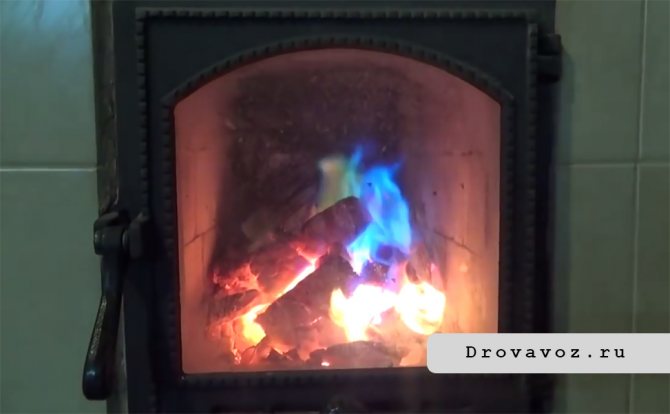 La bûche Dymova est produite sous la forme d'une barre qui imite le bois naturel. Il est posé avec le bois de chauffage lors de l'allumage. Pendant la combustion, une belle flamme turquoise est observée - un signe que les composants de nettoyage sont entrés dans une réaction thermique. L'avantage d'utiliser des bûches est l'esthétique et un effet visuel inhabituel.