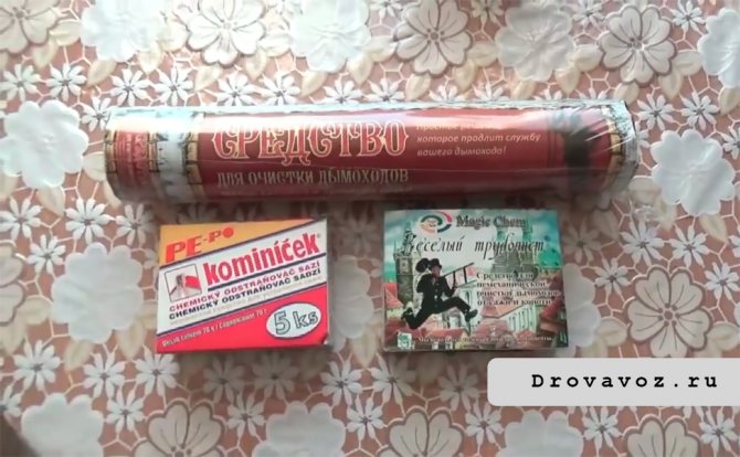 Les produits chimiques sont disponibles sous forme de briquettes, de poudre ou de liquide. Les caractéristiques des médicaments les plus populaires et les recommandations sur la meilleure façon de nettoyer la cheminée de la suie sont données ci-dessous.