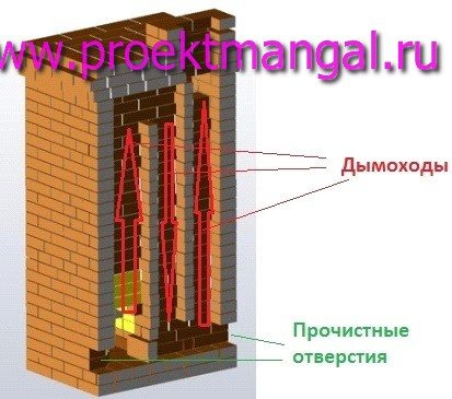 Le système multicanal est assez souvent utilisé lors de la construction de modèles plus volumineux. Mais un tel système présente un certain nombre d'inconvénients graves: la grande longueur des canaux offre une forte résistance aux gaz sortants, de sorte qu'il est nécessaire d'augmenter considérablement le tirage dans la cheminée; la surface du four chauffe de manière inégale, des zones de chute de température se créent, à la jonction desquelles des dommages peuvent survenir; dans les sections horizontales du système, la suie est constamment déposée en grande quantité, ce qui nécessite un nettoyage régulier.
