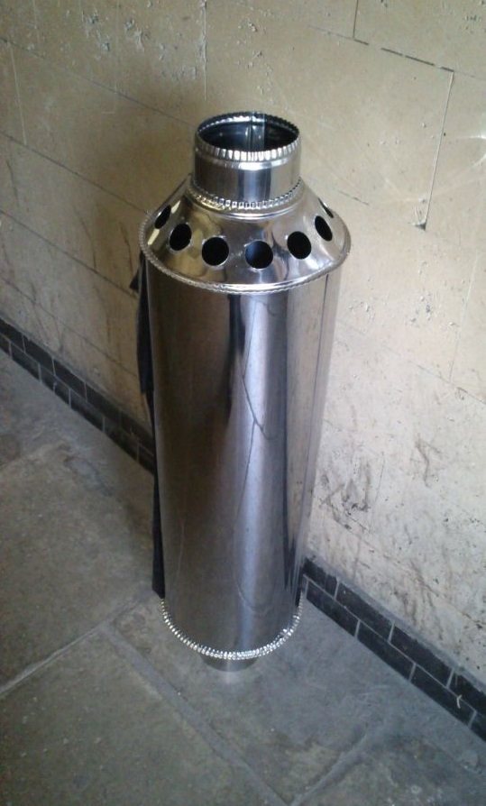 De plus, sur la section de cheminée du grenier, vous pouvez installer un échangeur de chaleur qui fonctionnerait sur le principe d'une chaudière à cloche - c'est lorsque l'air chaud monte et lorsqu'il se refroidit, lentement. Cette conception a son propre avantage considérable - une cheminée métallique ordinaire au deuxième étage est généralement chauffée de manière à ne pas être touchée, et un tel échangeur de chaleur réduira considérablement le risque d'incendie ou de brûlures accidentelles.