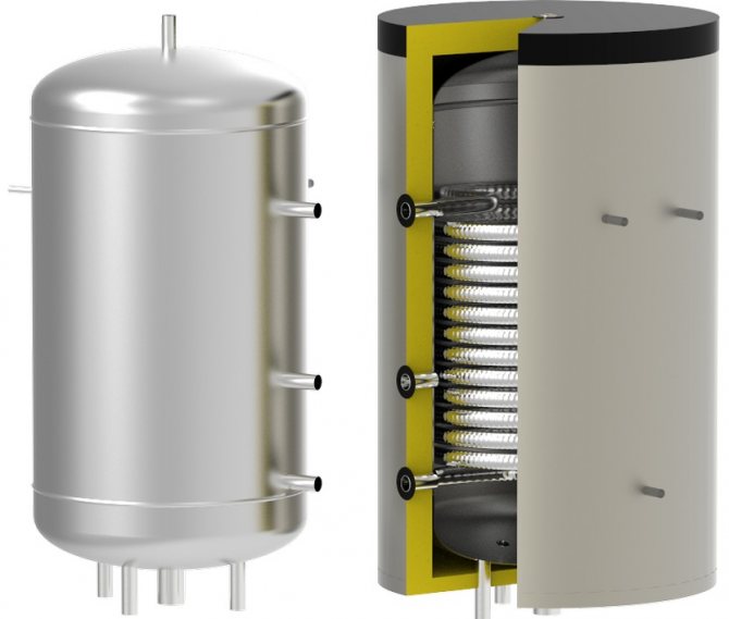 Un conteneur d'un volume allant jusqu'à 100 litres est connecté à l'échangeur de chaleur à l'aide de tuyaux. Après avoir chauffé le système de chauffage, l'eau chaude monte à travers le tuyau. Le liquide de refroidissement refroidi retourne à l'échangeur de chaleur.De ce fait, la température requise du liquide de refroidissement est maintenue dans le réservoir externe.