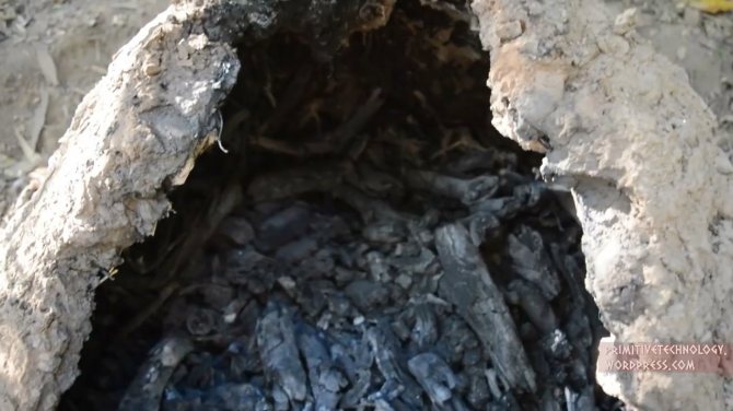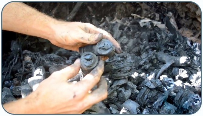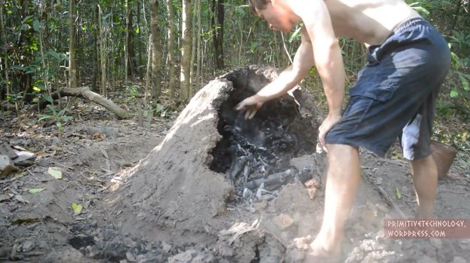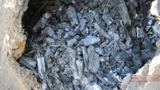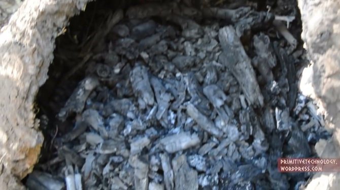 - Ensuite, nous laissons notre fosse tranquille pendant quelques jours jusqu'à ce que le processus soit terminé et que le bois de chauffage se refroidisse. Après ce temps, retirez le couvercle et sortez le charbon de bois, fabriqué à la main.