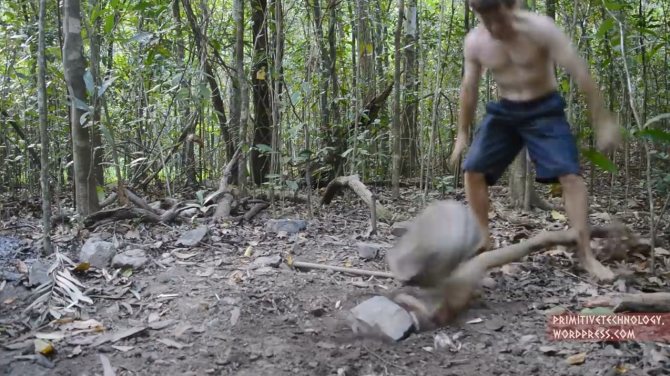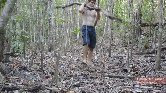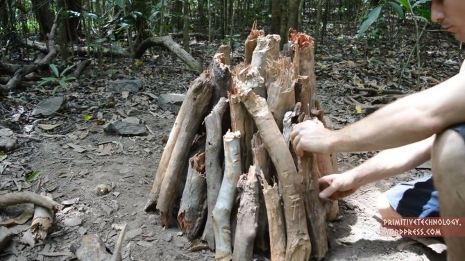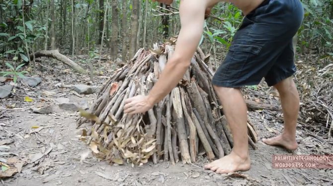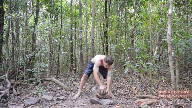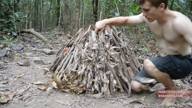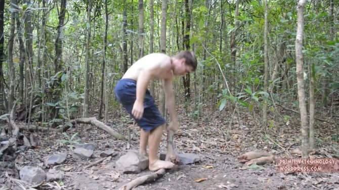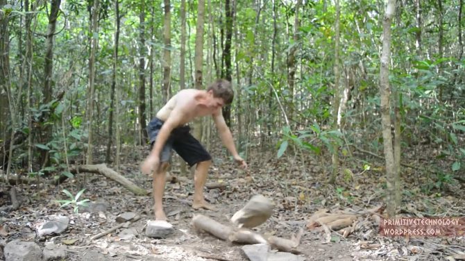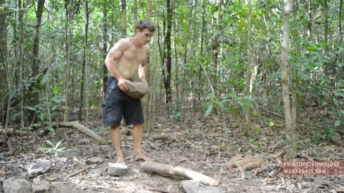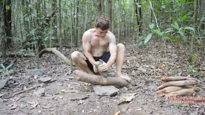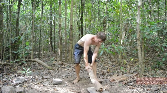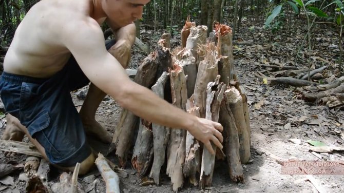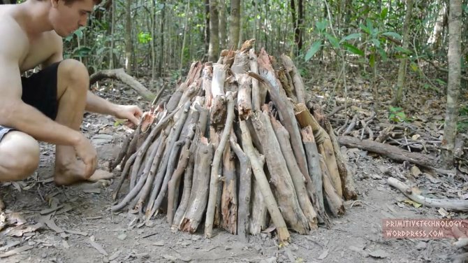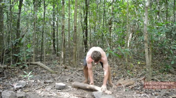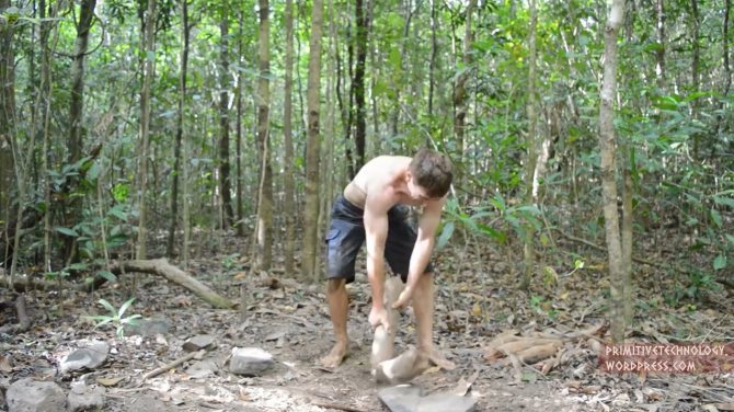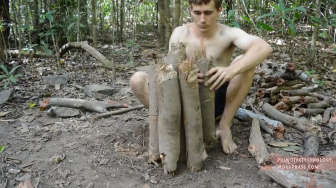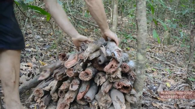 Processus de fabrication. Tout d'abord, le maître ramasse les branches sèches et les troncs d'arbres, puis brise les relativement minces à l'aide de pierres, les jetant sur la branche.