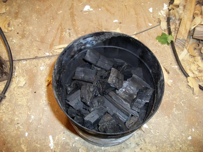 - La deuxième méthode consiste à faire un feu sous le canon lui-même. Le bois de chauffage est chargé à l'intérieur du conteneur, le couvercle est fermé et un petit trou est fait par le bas pour que l'air et les gaz puissent entrer. Le baril doit être placé sur une sorte de lit - il peut s'agir de briques ordinaires. Ensuite, faites un feu et maintenez le feu pendant 12 heures. Ce temps peut varier selon le type de bois. Après cette période, vous pouvez ouvrir le baril et sortir le charbon. Cette méthode est bonne en ce que les charbons finis sont de la bonne forme et ne s'effritent pas autant. L'inconvénient est que le processus prend beaucoup de temps.
