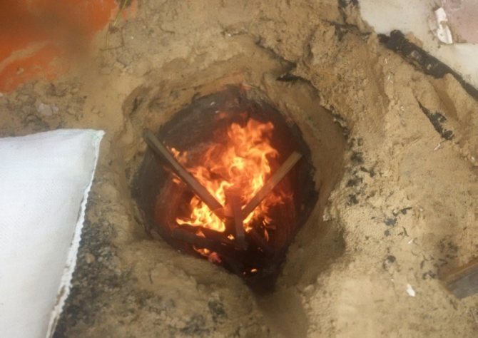 - Ensuite, nous commençons à faire un feu au fond de la fosse. Pour cela, tout bois de chauffage et bâtons conviennent.