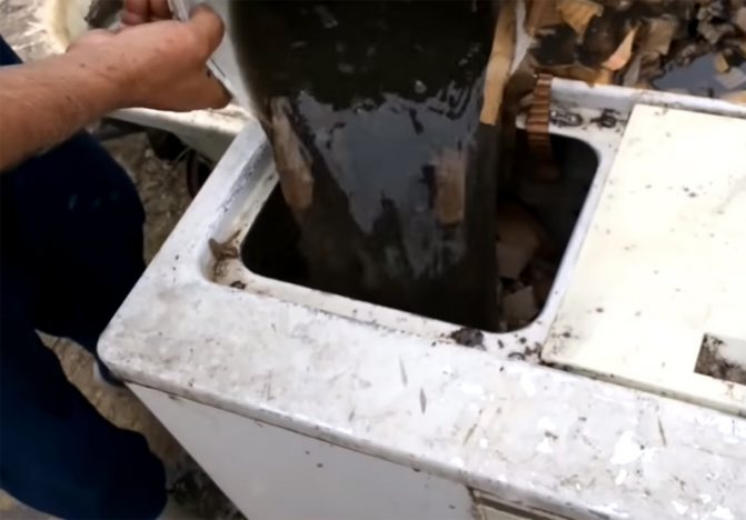 Le carton trempé est chargé dans le compartiment de lavage un peu plus de la moitié du conteneur. Pourquoi exactement dans la machine à laver ? C'est le broyeur idéal pour le carton trempé. Après tout, pour pouvoir le mélanger avec de la poussière de charbon, il est nécessaire de ramener le carton à l'état pâteux, et l'ancienne machine à laver s'acquitte parfaitement de cette tâche.