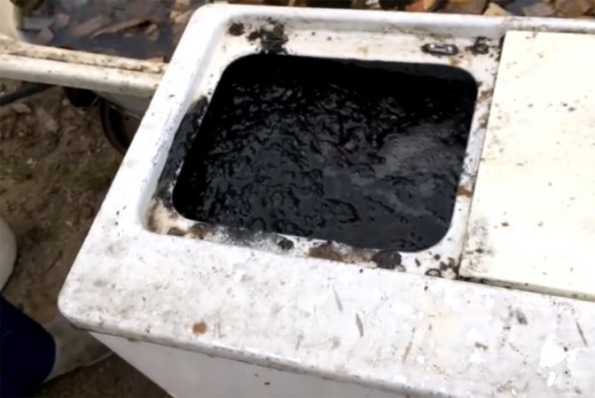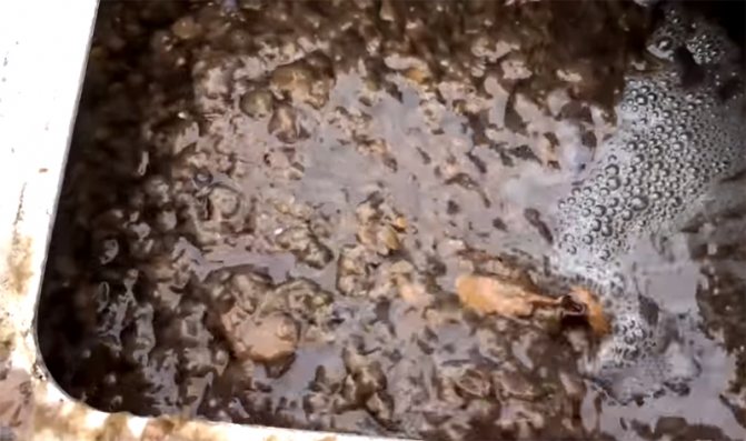 Maintenant, vous devez éclaircir un peu la masse. Pour ce faire, 2,5 à 3 seaux d'eau sont versés dans la machine (elle est prise directement dans le bain). D'ailleurs, pour éviter une trop grande consommation, le liquide extrait de la matière première par la presse est également collecté dans un seau et renvoyé dans le bain.