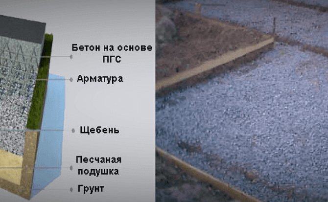 Dans tous les autres cas, soit une solution de béton maigre est posée à l'aide de pierre concassée, soit un mélange de sable et de pierre concassée. Ce dernier, bien qu'apparemment incohérent en termes de résistance, a ses propres avantages par rapport aux autres matériaux: